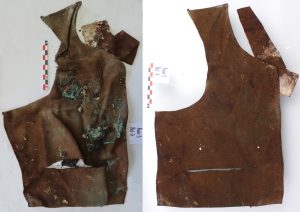 fig. 3 : Photographie d’un des éléments du gilet, avant et après nettoyage (F. Médard)