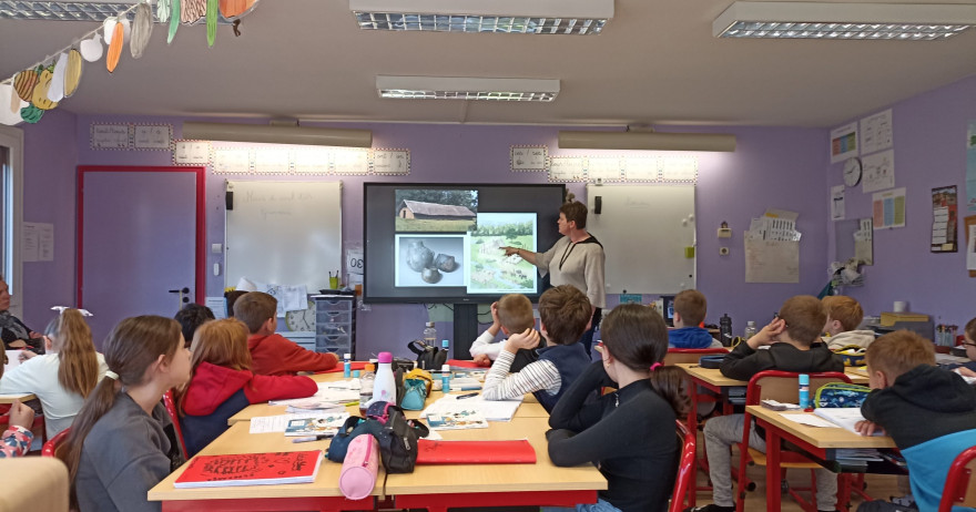 Une seconde rencontre a eu lieu à l’école de Bergholtz suite aux fouilles préventives réalisées dans la commune : ANTEA-Archéologie était invité par l’école primaire pour présenter les premiers résultats de l’opération qui a eu lieu rue Neuve et chemin d’Orschwihr d’avril à septembre 2023. Les élèves des deux classes (CP-CE1-CE2 et CM1-CM2) avaient eu l’occasion de visiter le chantier avant que celui ne se termine en septembre dernier, mais sans avoir pu bénéficier des explications des archéologues. Cette journée a été pour eux l’occasion de découvrir toutes les périodes mises au jour sur le site depuis le Néolithique jusqu’à l’époque Moderne et d’ainsi avoir un aperçu de l’histoire du village dans lequel ils habitent. Ce moment de partage a été pour eux l’occasion de poser un très grand nombre de questions et d’envisager les cours d’histoire d’une autre façon.